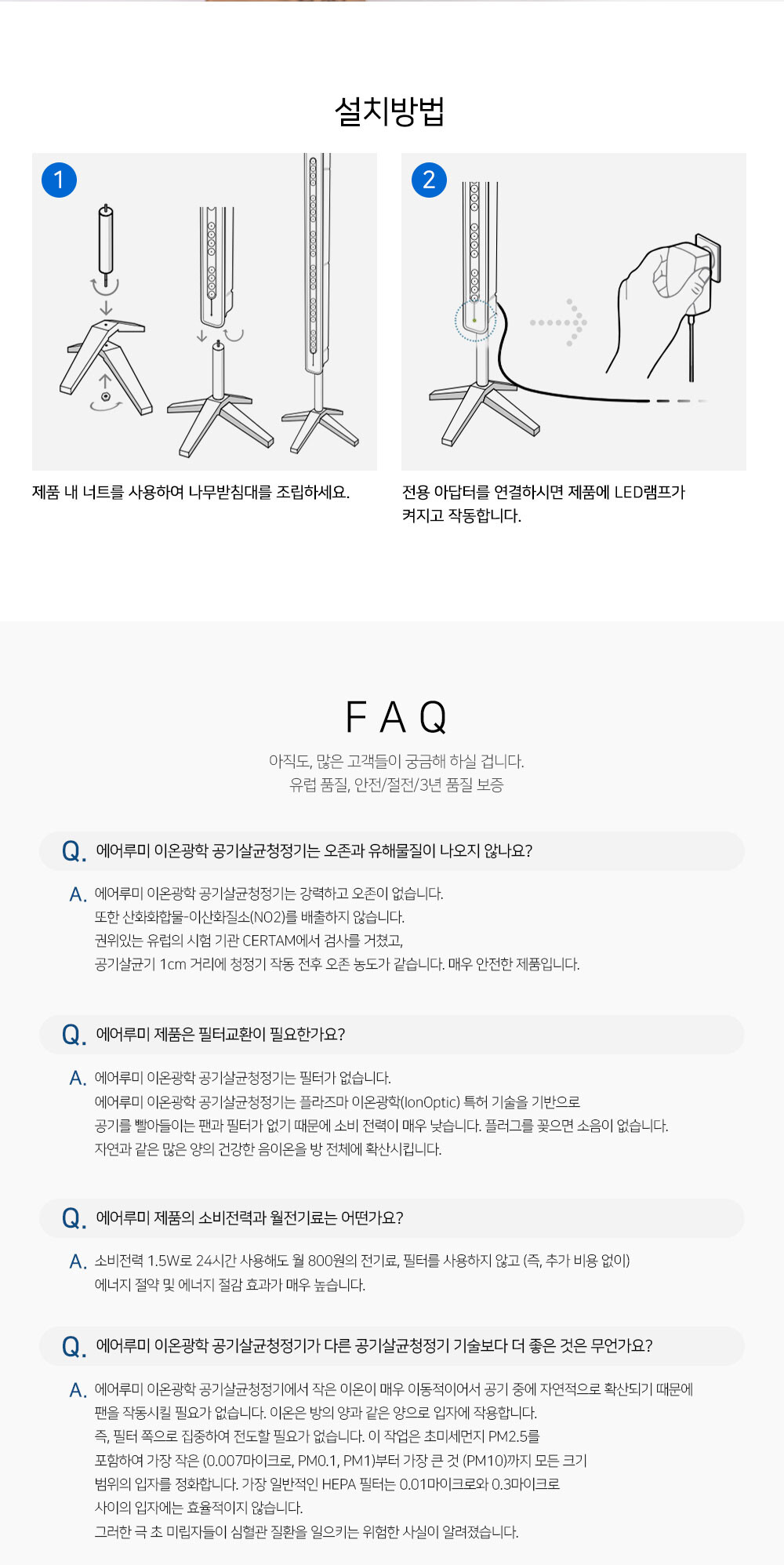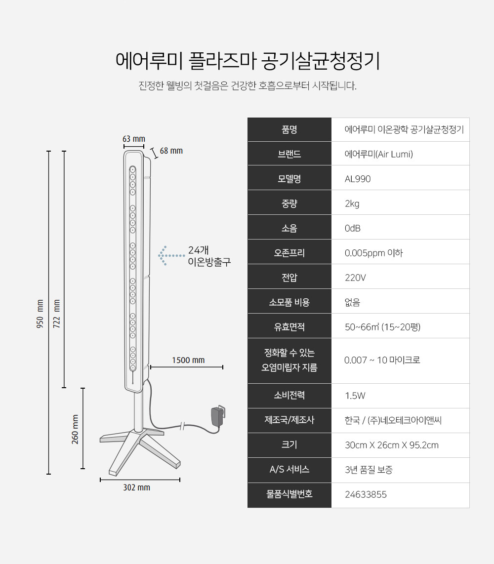 플라즈마 이온광학공기살균청정기 에어루미 AL990(스탠드형) / 물품식별번호 : 24633855