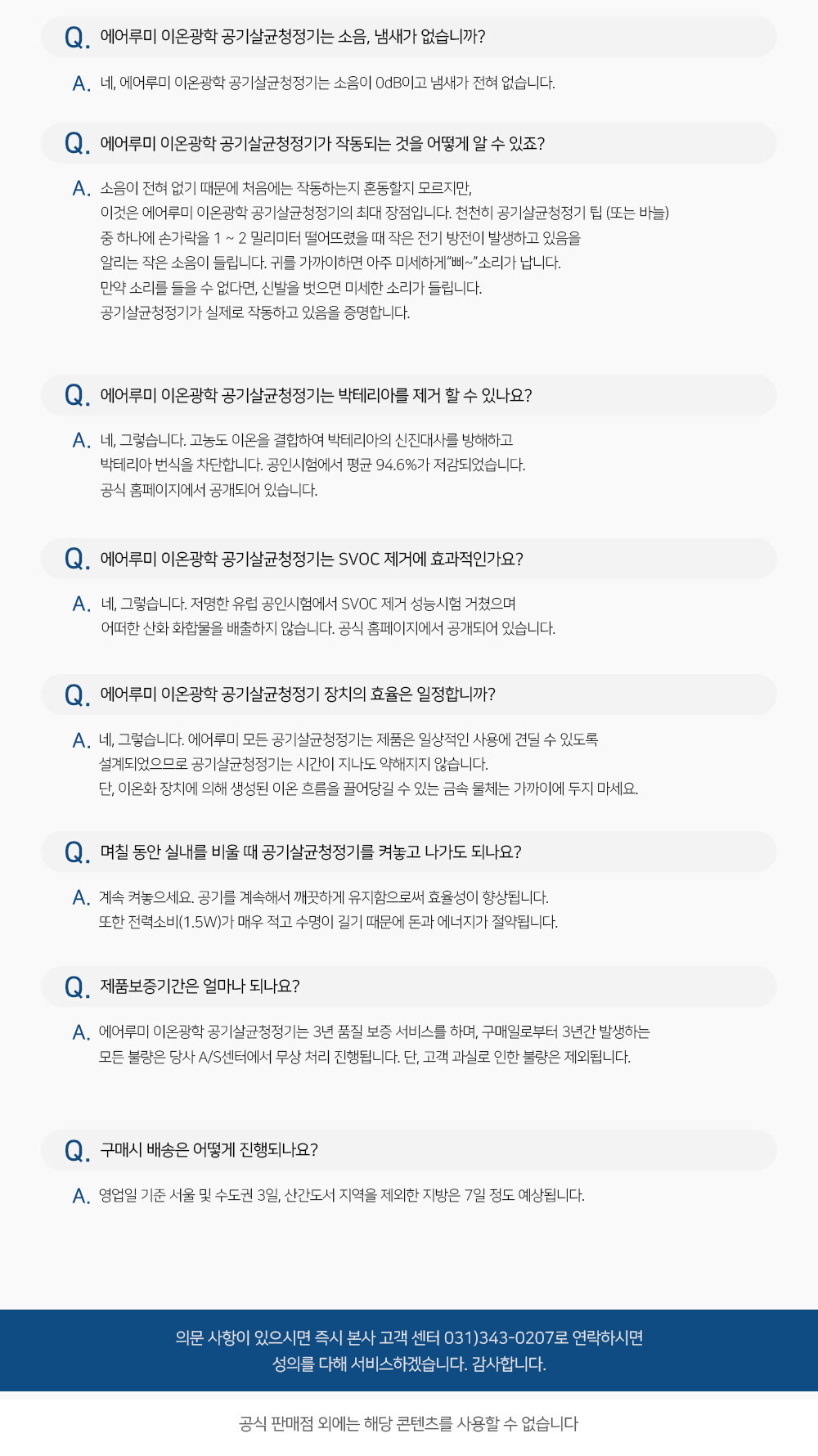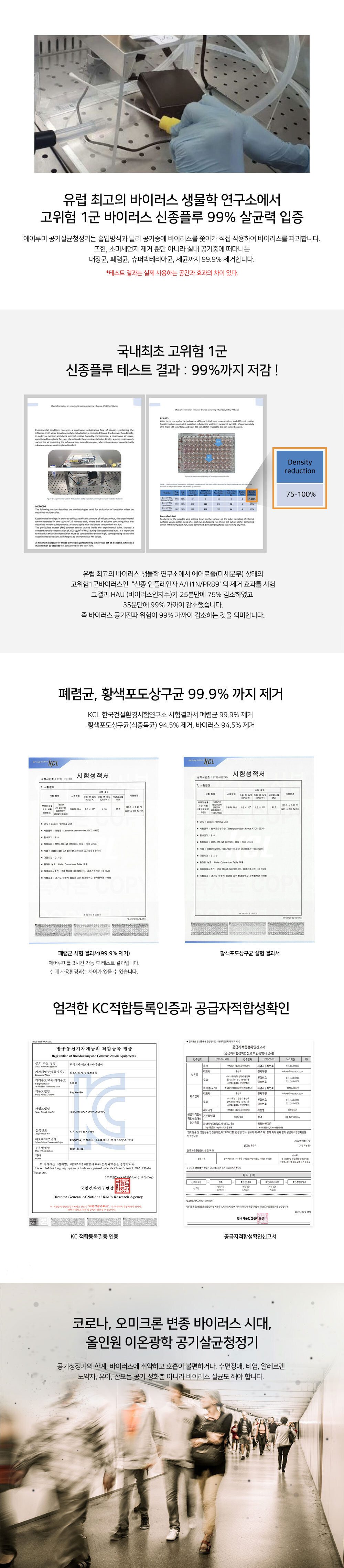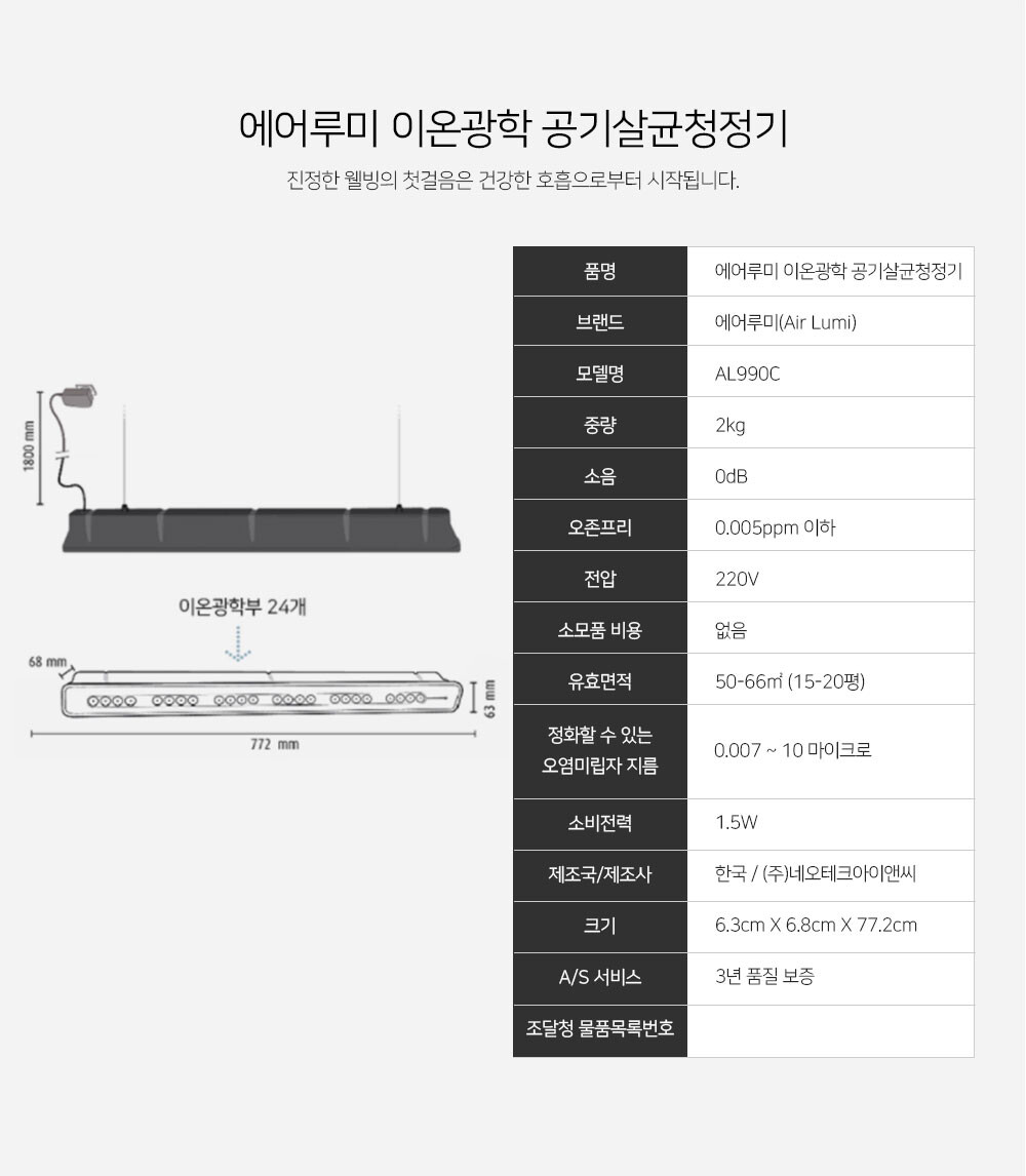 이온광학 공기살균청정기