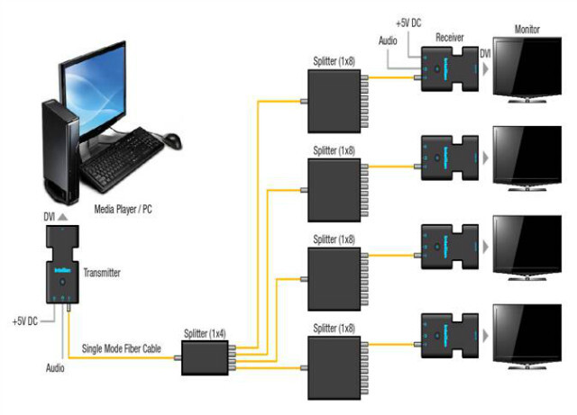 강력한 비디오 분배솔루션, 기가링크는 WUXGA(1920X1200)해상도의 비디오신호와 CD음질의 오디오를 1코아 광케이블로 송신하고 분배할 수 있는 유일한 제품입니다.